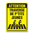 Cette affiche Attention - Traverse de p'tits jeunes est parfaite pour ajouter une petite touche humoristique tout en augmentant la sécurité dans votre quartier