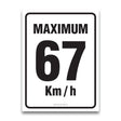 Cette affiche Maximum 67 km/h est parfaite pour répondre aux normes d'affichage en santé et sécurité nécessaire en milieu de travail ou pour indiquer la vitesse maximal dans un stationnement ou un chemin privé.